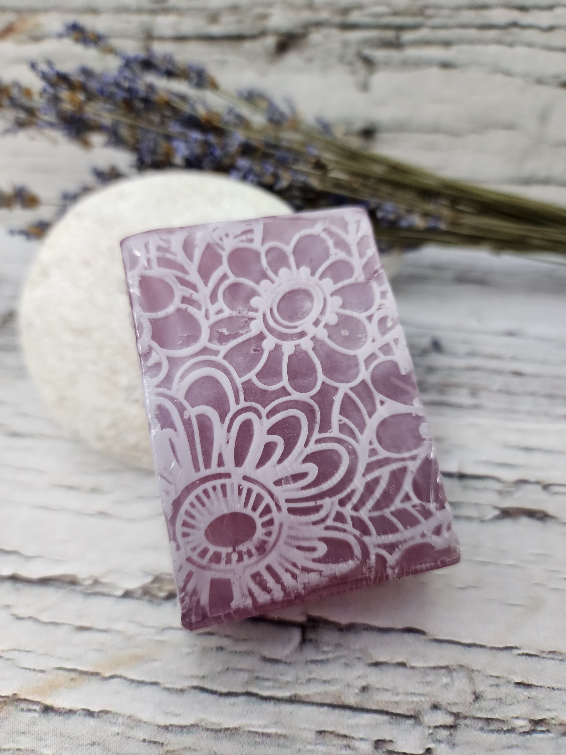 The delicate lacy pattern on the soap adds a touch of femininity to your bathroom decor, while the combination of aloe and lavender helps to calm and hydrate your skin. The addition of bergamot gives the soap a fresh and citrusy scent that invigorates your senses and uplifts your mood.