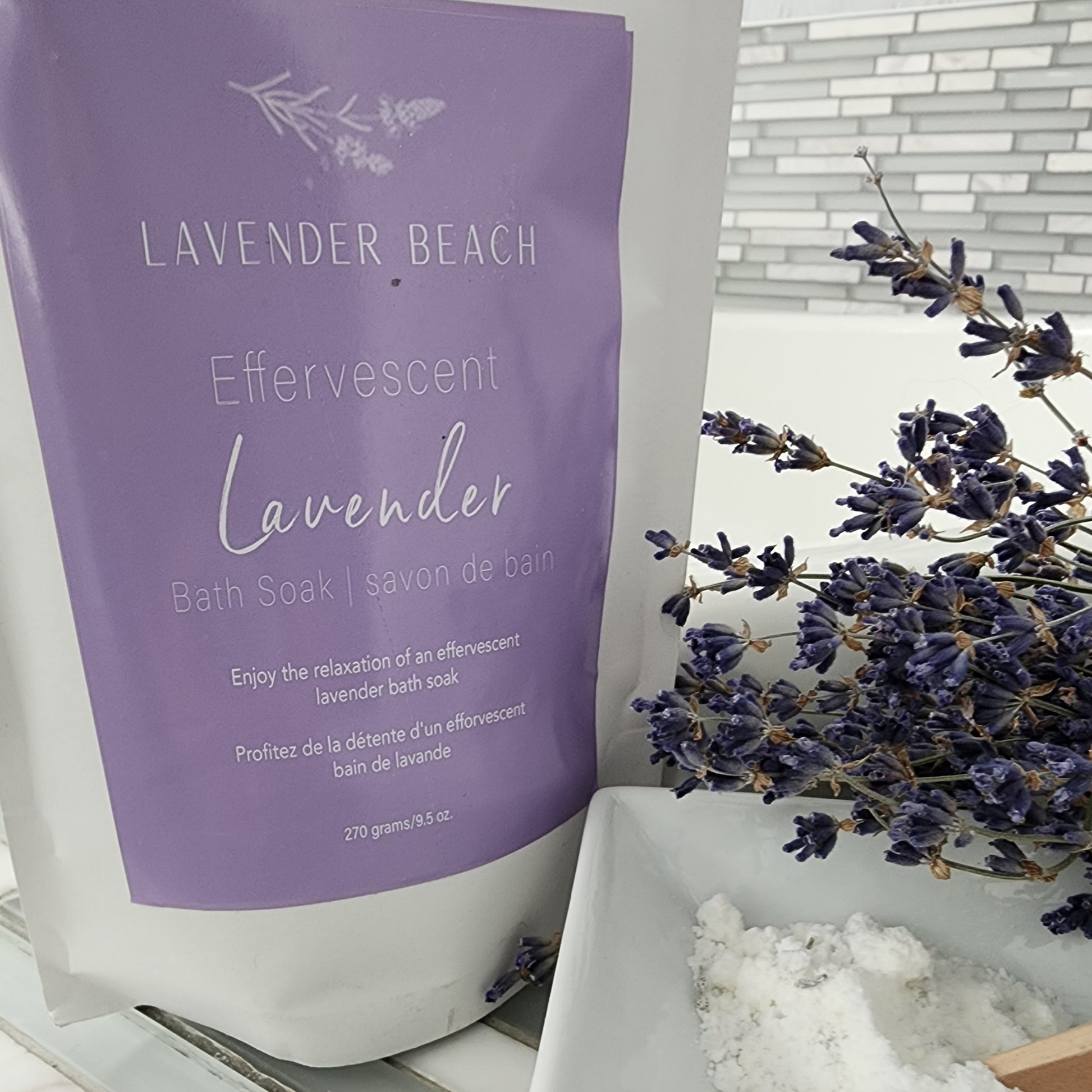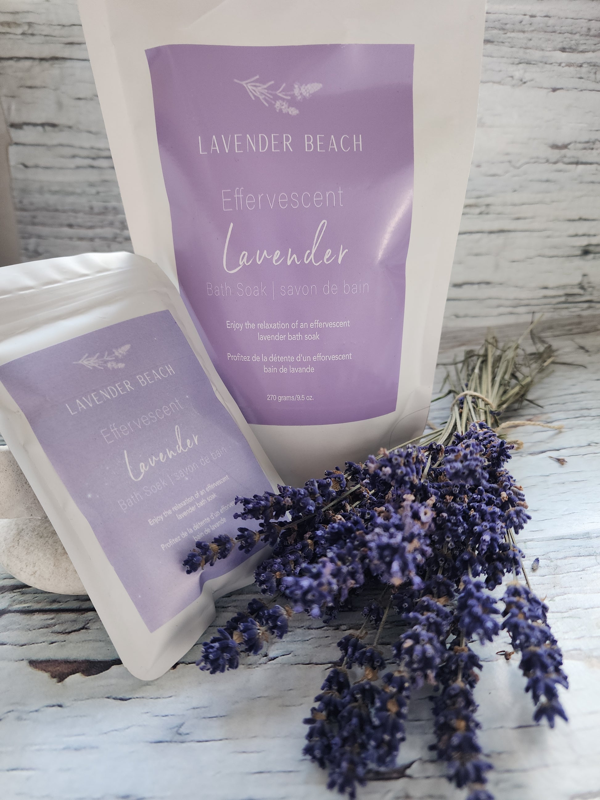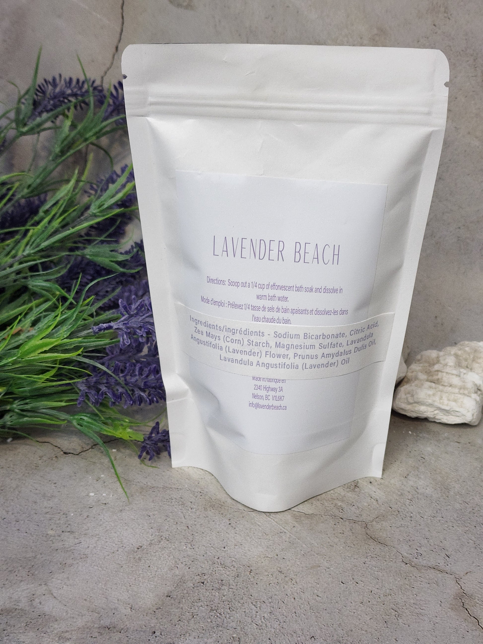 The efforvescent, fizzing action of our lavender bath soak releases the calming fragrance of lavender into the air as the bath bomb dissolves into your bath water. Relax in the luxurious emollients of lavender essential oil and epsom salts and sooth your cares away.